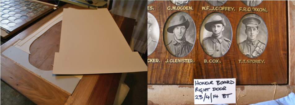 As the Board was being conserved and photographed the project team conducted research to establish the story of the Board. We discovered the stories behind the creation of the Board, about Cr William Henderson who worked for many years to gather the names and portraits and of the Mothers and families who were grateful to Cr Henderson for what he had done to perpetuate the memories of those who were so dear to them.  Please go to our Honour Board page to read more.