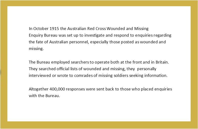 For the service records we consulted the digitised military records at the Australian War Memorial (AWM) and the National Archives of Australia (NAA). We sought further information and cross referenced through the digitised newspapers on the National Library’s TROVE site, the National Anzac Centre, AIF Project, Commonwealth War Graves, family histories, other memorial honour boards, both local and further afield, school histories and miscellaneous published and unpublished records.